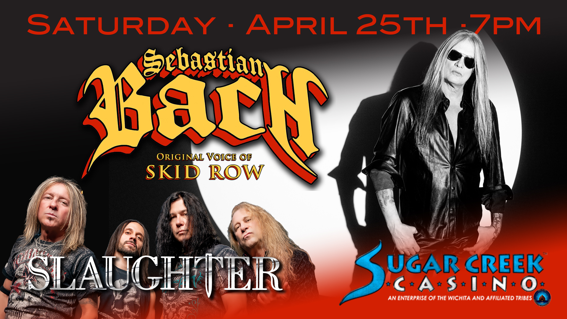 Sebastian Bach, the original voice of Skid Row, and Slaughter, two of the biggest names of 80's rock, are taking the stage together live, April 25th!!! This is a show you don't want to miss!!!